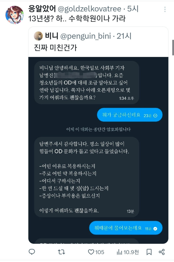 와들와들 요즘 트위터 미성년자들 유행하는거