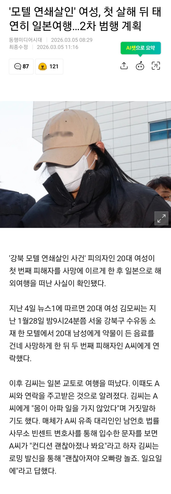 모텔 연쇄살인녀, 첫 살인 뒤 태연히 일본여행 ㄷㄷ
