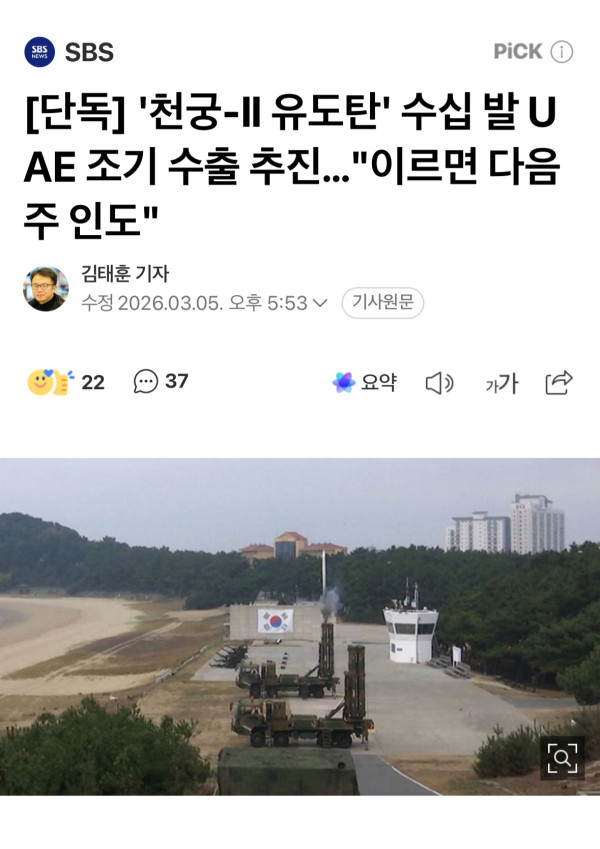 난리난 중동에...천궁2...다음주 조기 인도하기로ㅋㅋㅋ