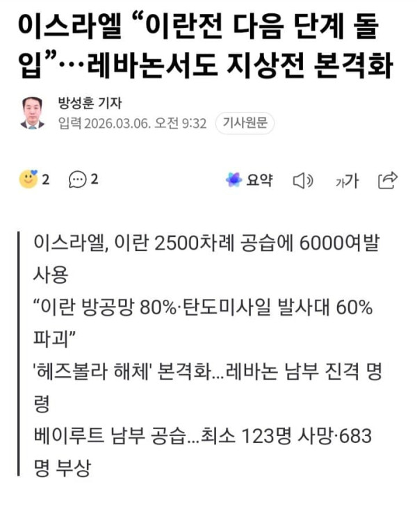 이스라엘 “이란전 다음 단계 돌입”…레바논서도 지상전 본격화
