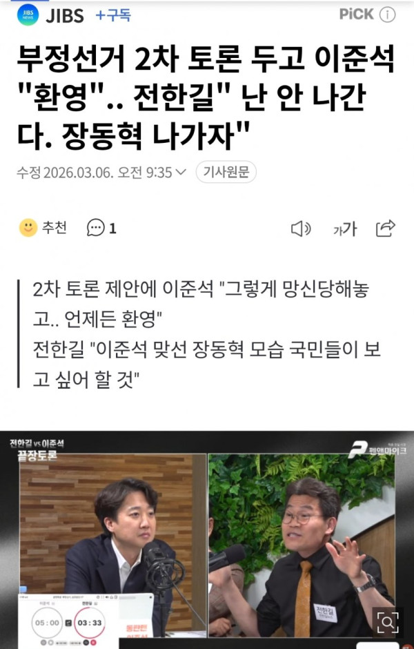 mbc) 이준석-전한길 토론회 떴다ㅋㅋㅋㅋㅋ