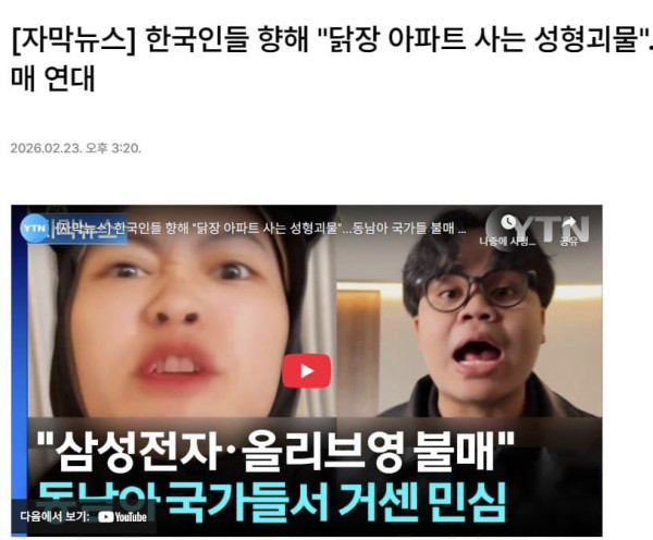 최근 반한 감정 때문에