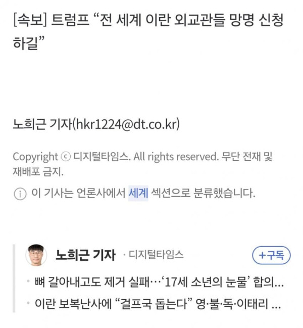 [속보] 트럼프 “전 세계 이란 외교관들 망명 신청하길”