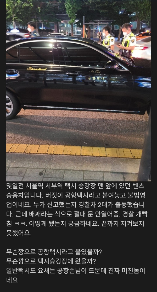 우선 난 서울역이나 인공, 각종 공연장 등 불법택시를 취미로 고발했었던 사람이고