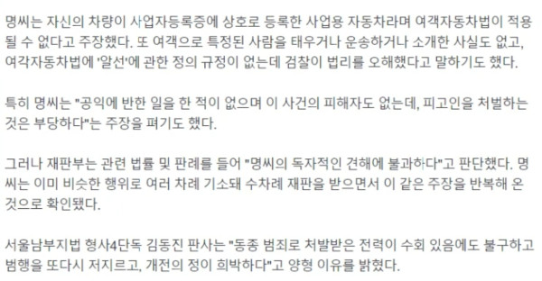 '나는 내 자가용 차량을 개인사업자의 사업용 자동차로 등록하여 운행하는거라서 여객자동차운송사업법을 적용 할 수 없다(??).