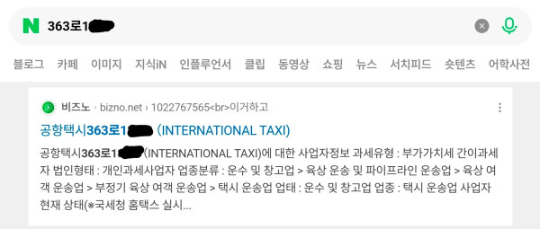 당당하게 본인 집 주소로 '공항택시363로1***' 사업자 만들어둔거