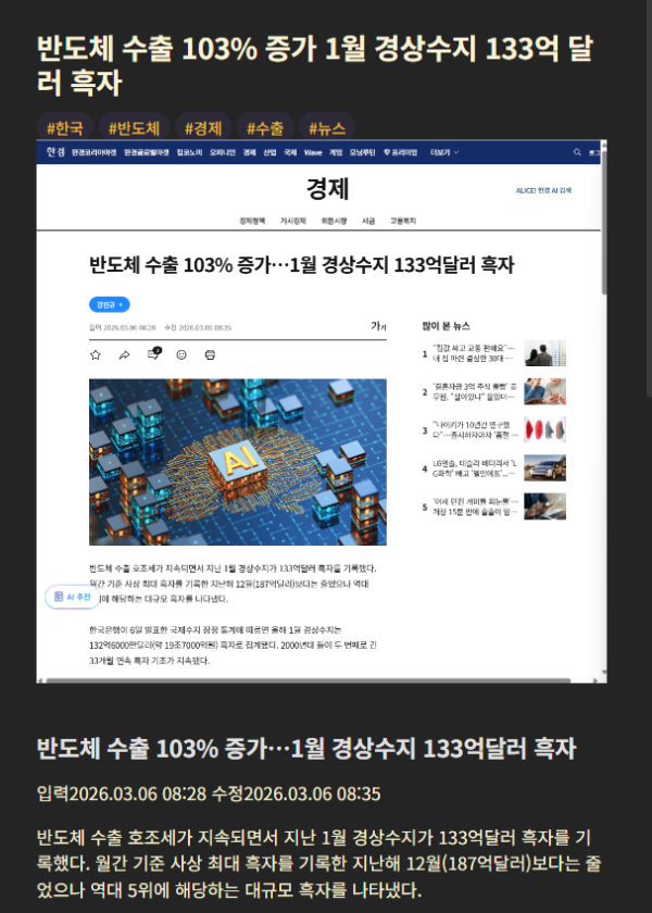 [속보] 1월 경상흑자 133억달러…반도체 등 수출 호조에 역대 5위