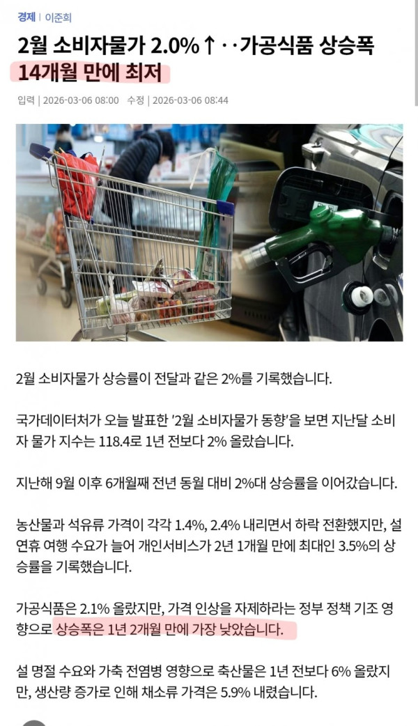 속보) 이재명, 14개월 만에...물가상승률...최저치 달성ㅋㅋ
