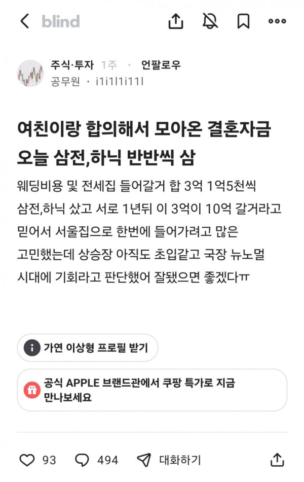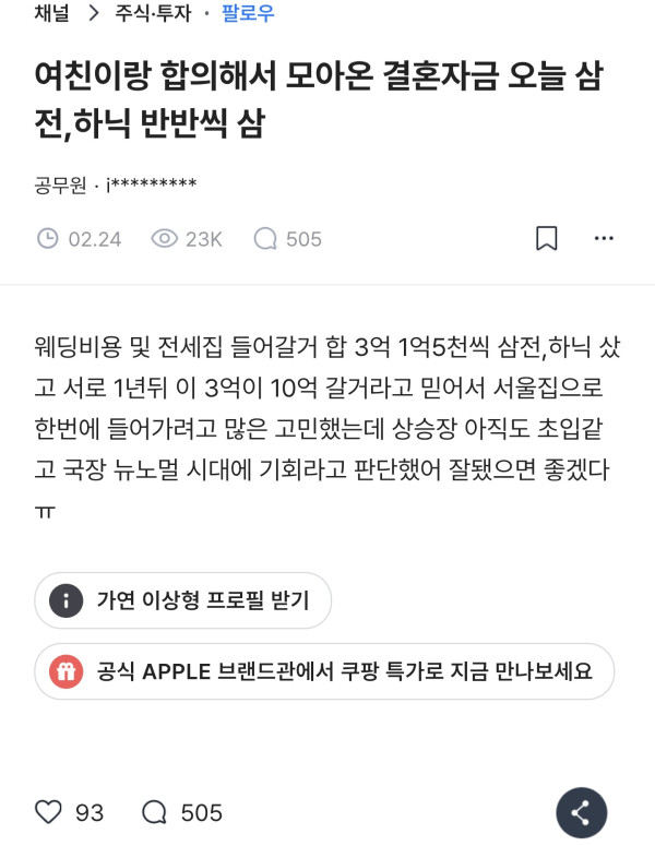 "결혼자금 3억으로 삼전·SK하이닉스 샀는데…" 공무원 화제