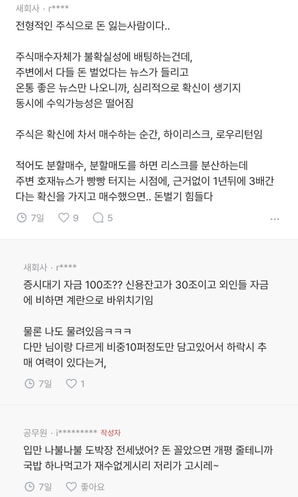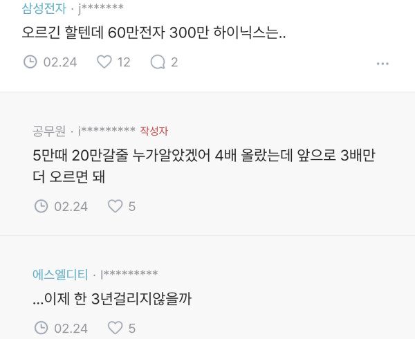 삼전하닉 3억 공무원 블라인드 댓글