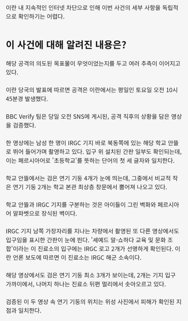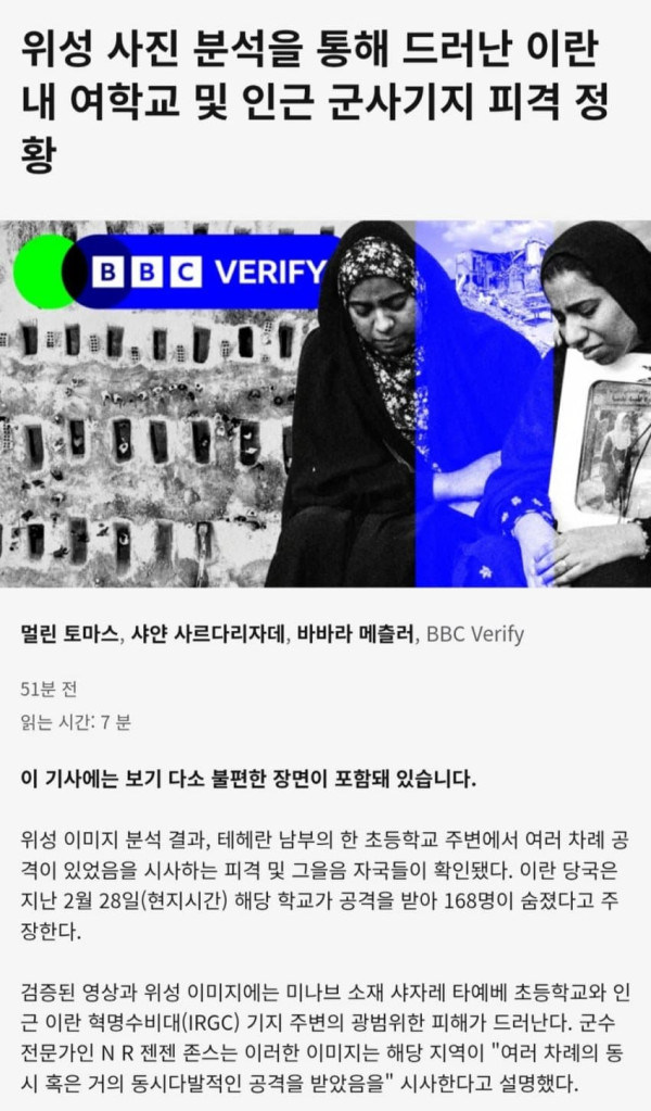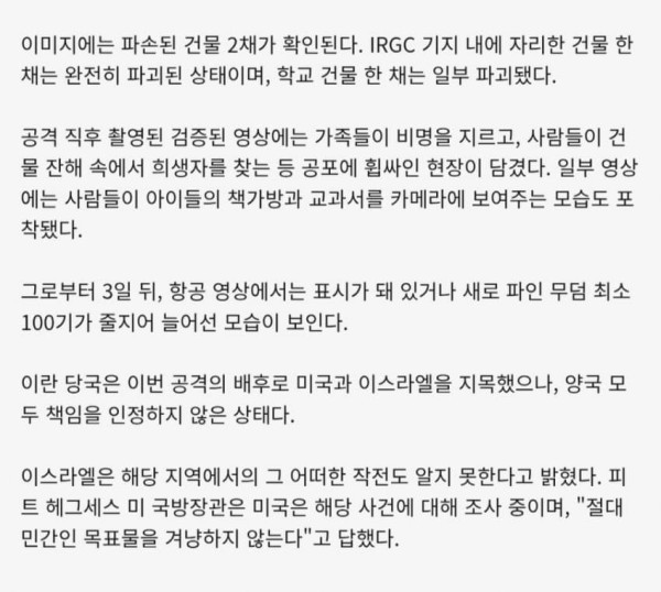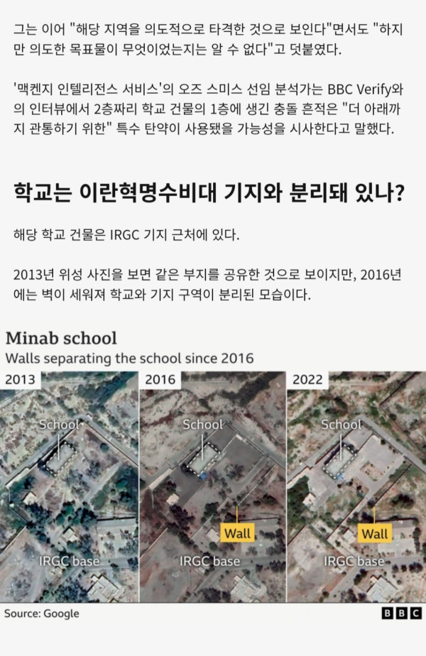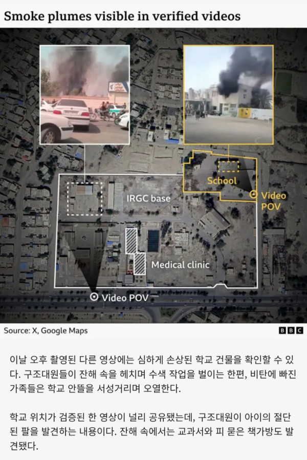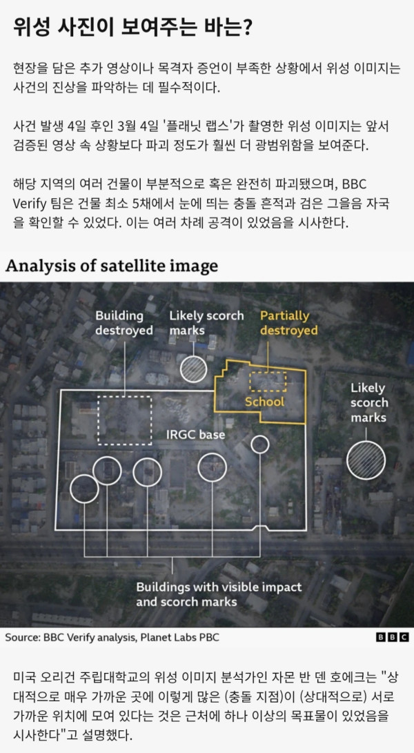 bbc) 위성사진으로 분석한 이란 초등학교 폭격 "여러차례 공격받아"