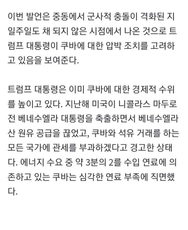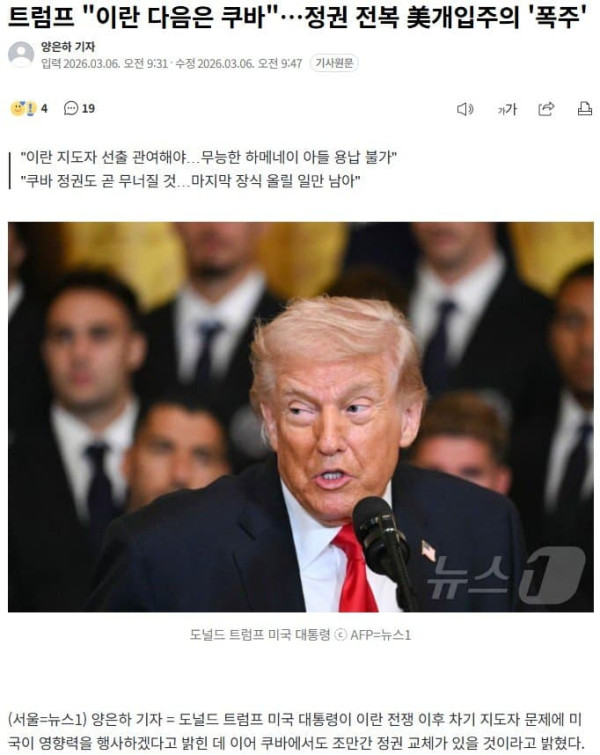 트럼프 "다음 타겟은 쿠바"