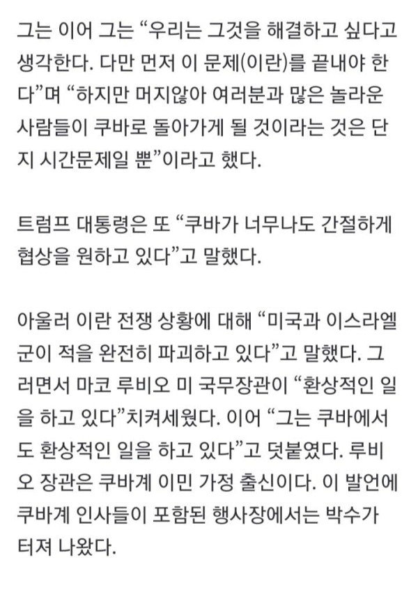 트럼프 “이란 다음은 쿠바…시간문제일 뿐”
