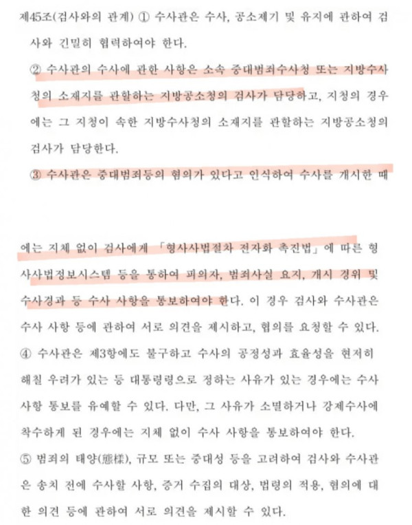 이건 문재인 정부 시절 검경수사권 조정 이후 수사준칙이 개정되면서 검사와 사법경찰관의 관계가 지휘, 복종에서 상호, 협력 관계로 바뀐 것과도 역행하는 독소조항들임.