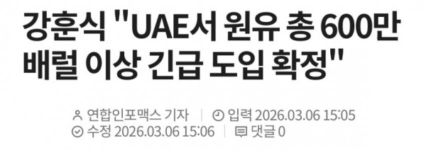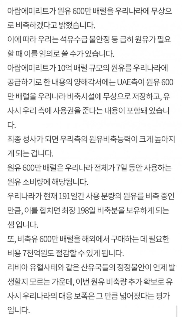 uae는 파병 대가로 이미 600만 배럴 국내 비축중임