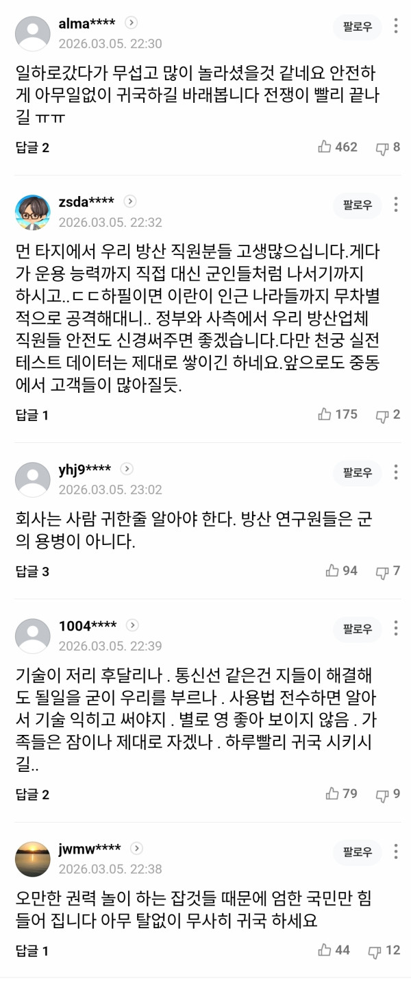 대기업 새끼들은 무기 팔아먹을 생각만 하나?