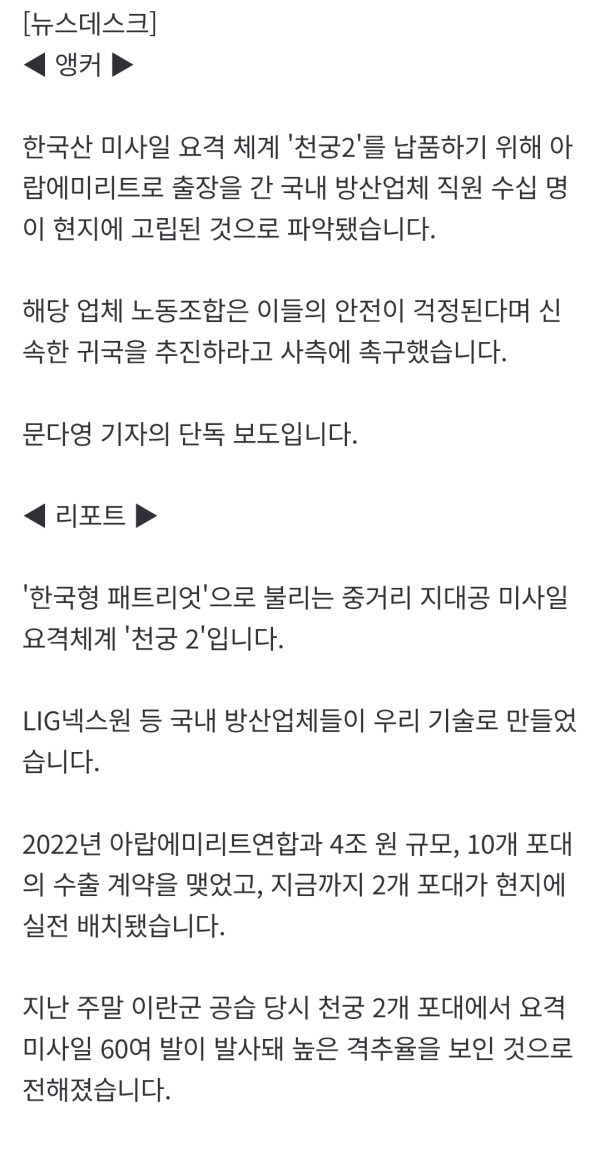UAE출장갔다 날벼락, 방산 직원들 현지서 고립