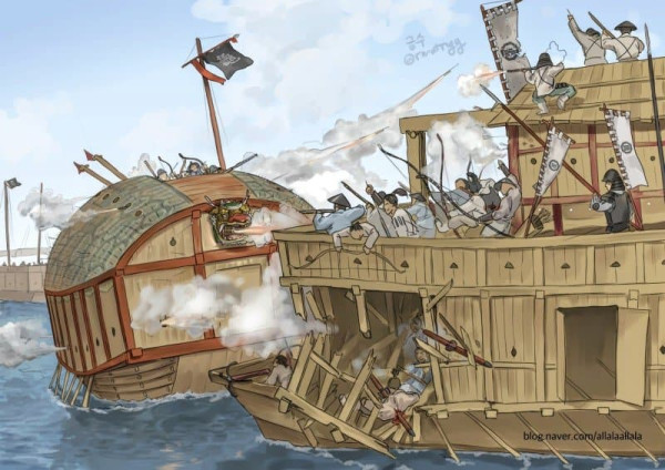 조선 수군의 강력함과 가시돋친 철갑을 두른 배 때문에 일본군이 해전에서 고전하고 보급로가 끊겼다는 사실이나