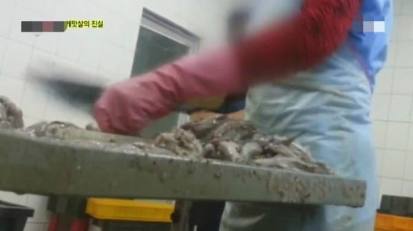바닥에 떨어진 것도 싹싹 긁어서 연육으로 만든다고!