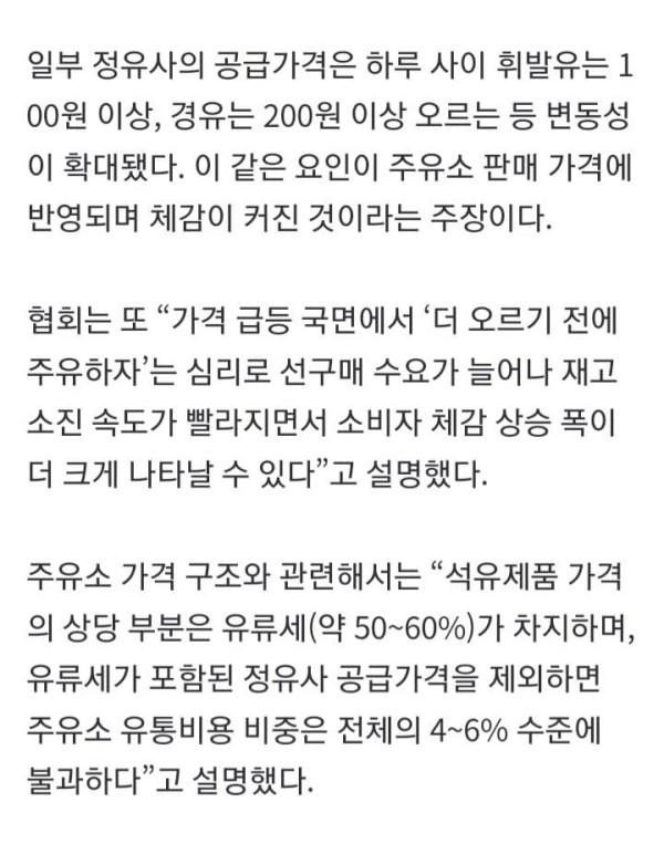 주유소협회 "우리가 기름값 폭리?…정유사 공급가 인상 때문"
