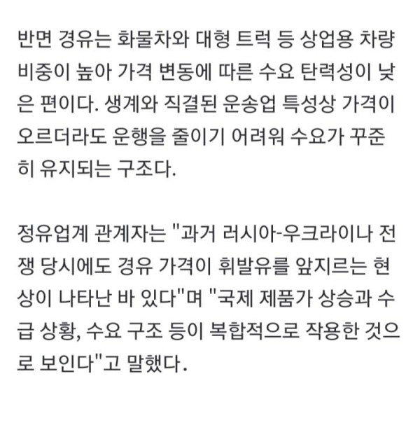 휘발유 추월한 경유…중동 사태 이후 '가격 역전' 현상 왜?