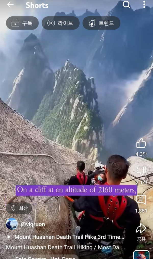 중국에서 산세가 험악하기로 유명한 산이 화산이고