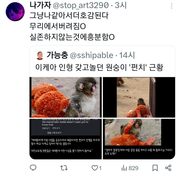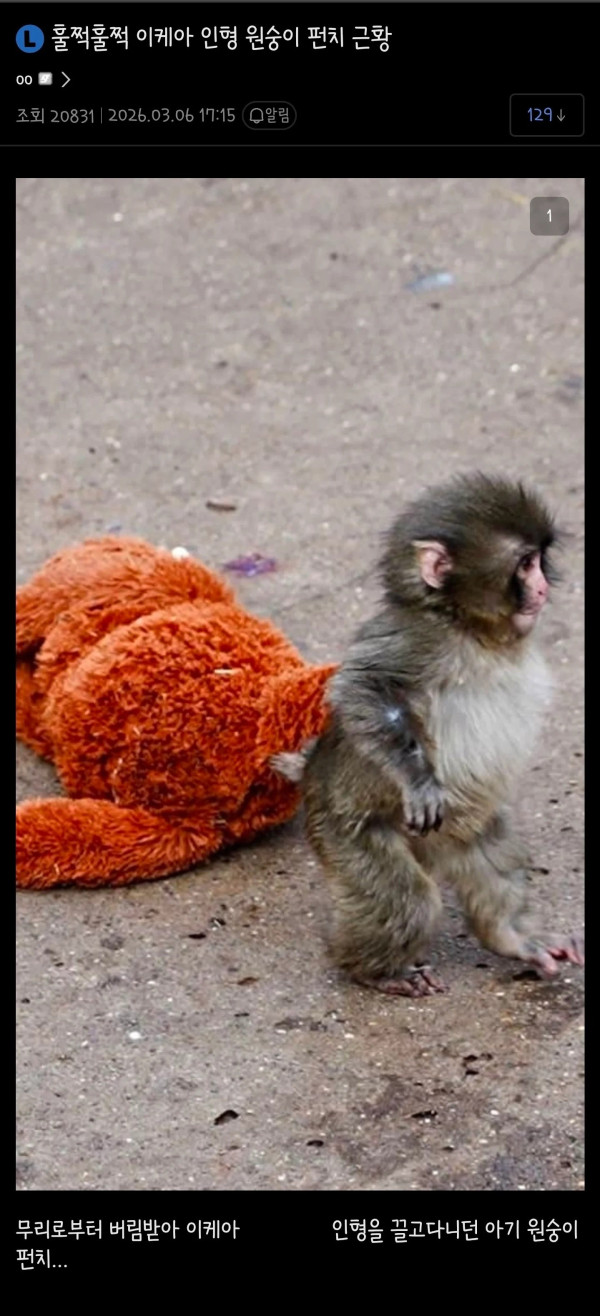 훌쩍훌쩍 이케아 인형 원숭이 펀치 근황