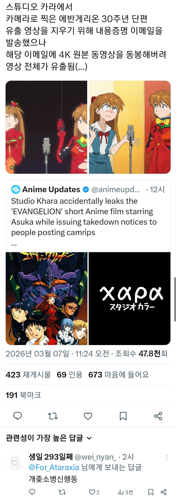 에반게리온 30주년 단편 유출 타임라인...jyp