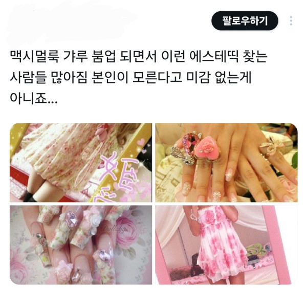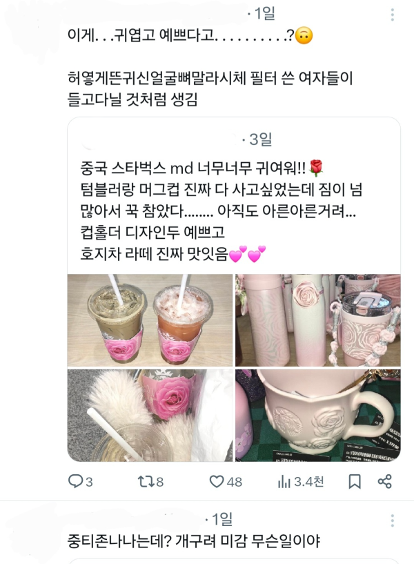 그걸 본 또 다른 사람들이 중국건 최신유행 에스테틱 갸루 감성인데 한국건 걍 다이소 싼티감성이라고 또 욕하는중