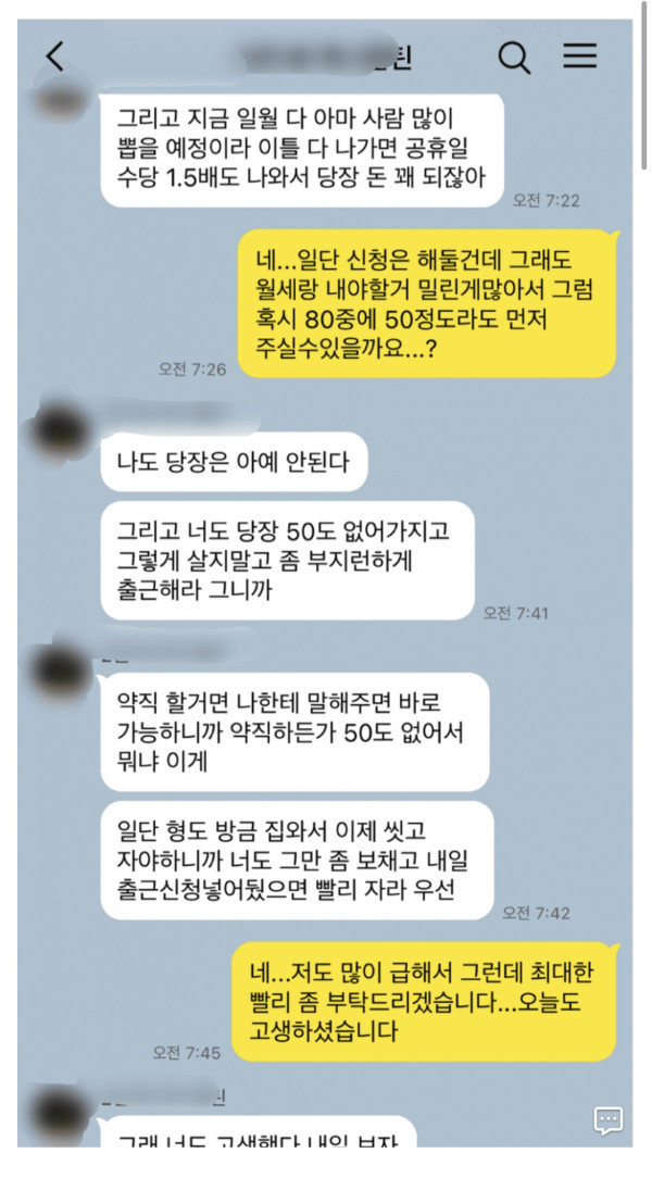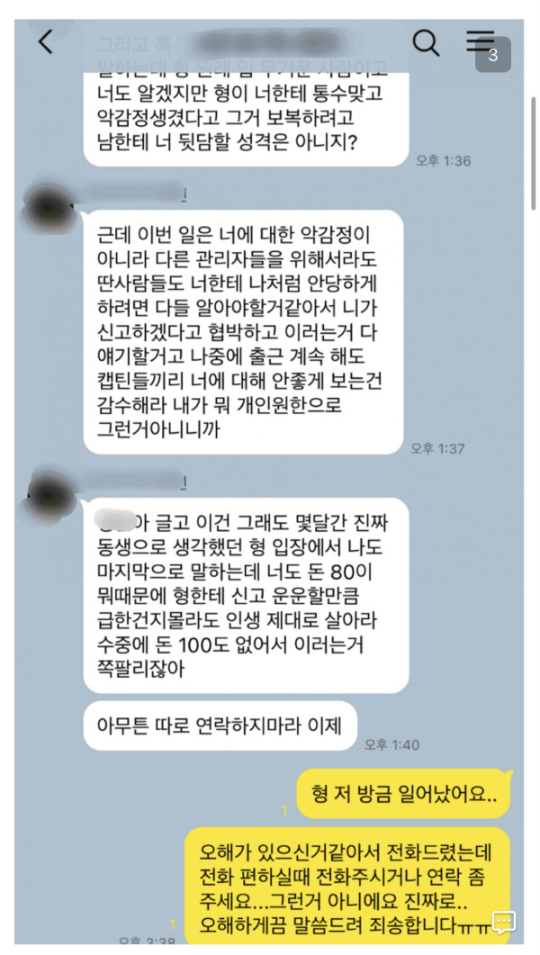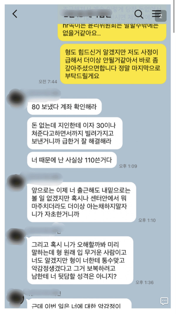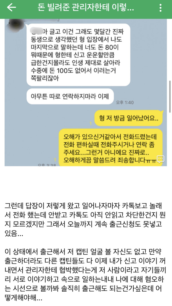 돈 빌려준 관리자한테 이렇게 카톡 받았는데 어떡해야할지 모르겠다..