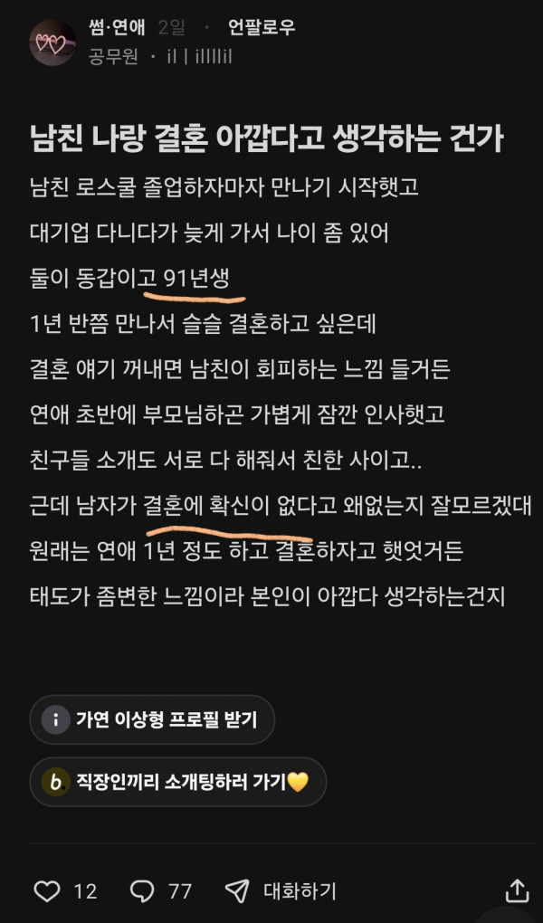 남친이 결혼에 확신이 없데