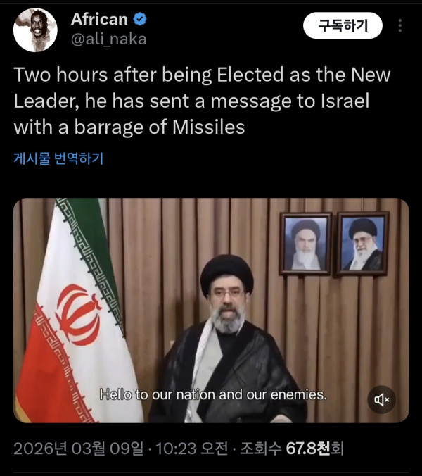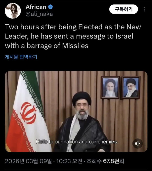 모즈타바 하메네이 영상으로 이스라엘에 경고 메시지 발언