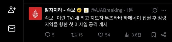 이란, 무즈타바 하메네이 집권 후 점령 지역을 향한 첫 미사일 공격 개시