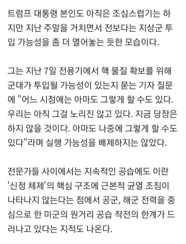공습만으론 정권교체 불가…트럼프 결국 지상군 투입 결심하나