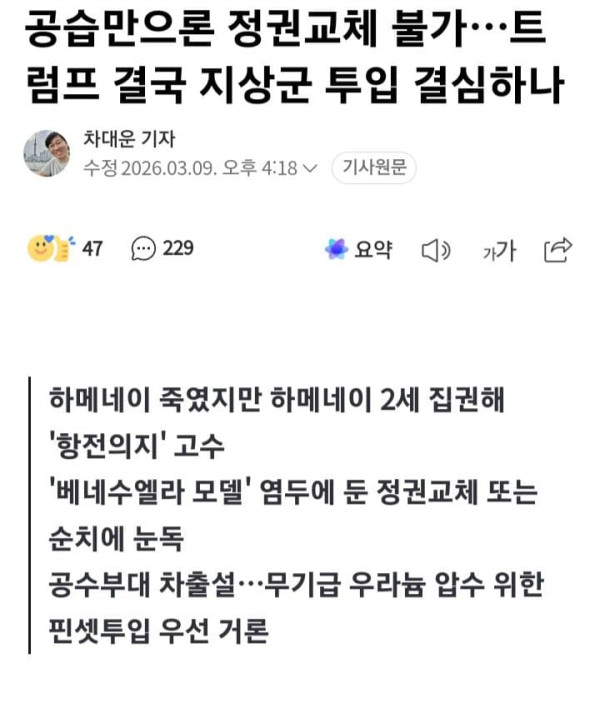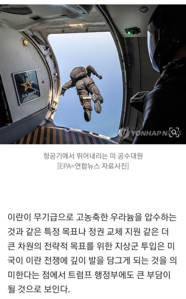 공습만으론 정권교체 불가…트럼프 결국 지상군 투입하나