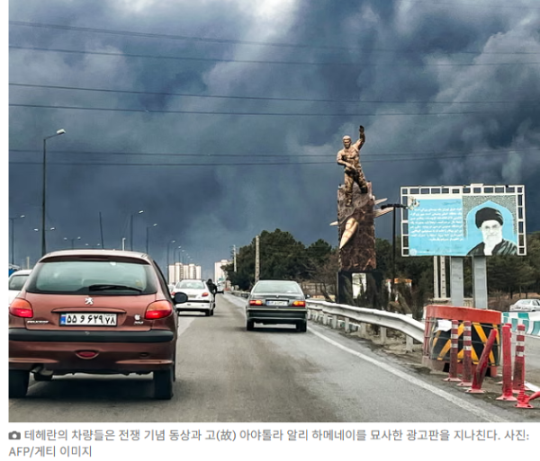 미국·이스라엘이 이란 수도 테헤란 인근 주요 석유 저장 시설을 폭격하면서 시커먼 ‘기름비’가 쏟아지고 독성 가스가 구름처럼 퍼졌다.