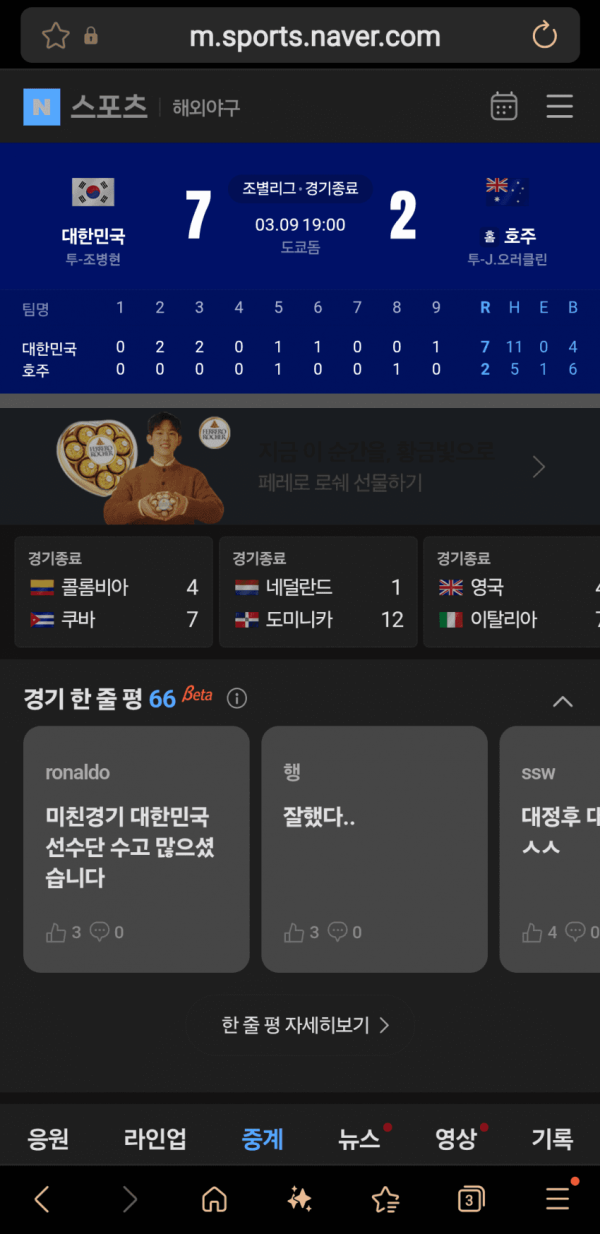 싱글벙글 오늘자 말도 안되는 야구를 해낸 대한민국