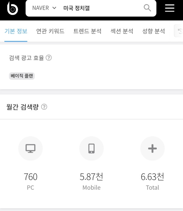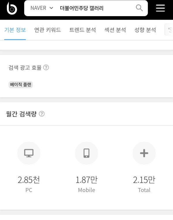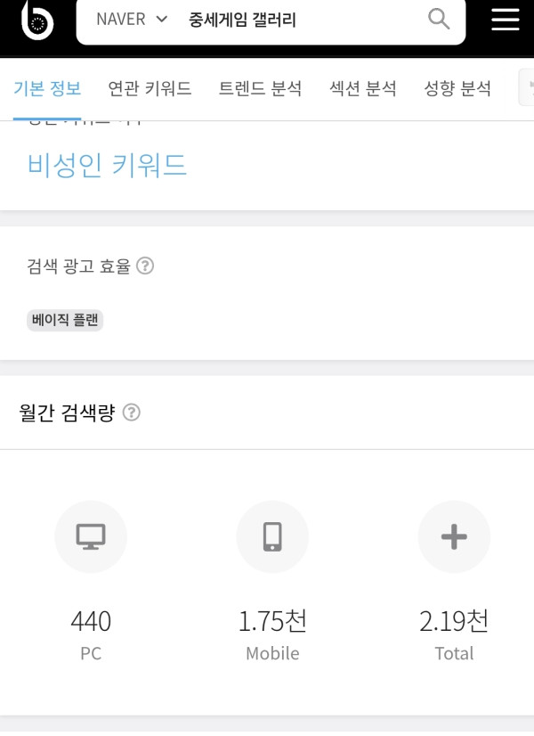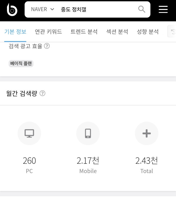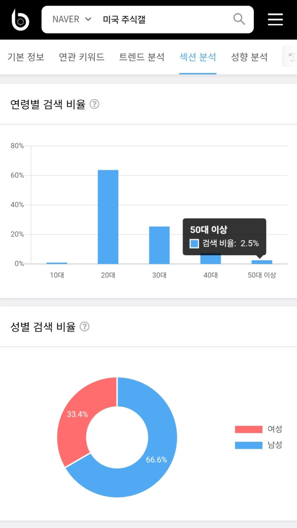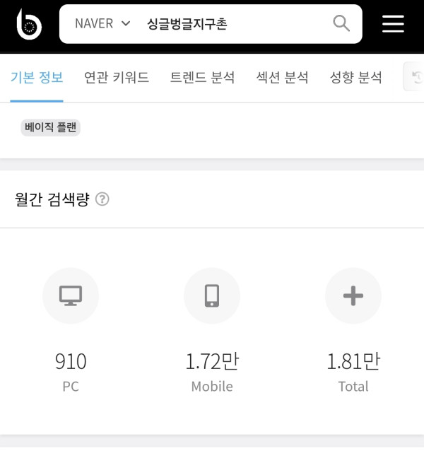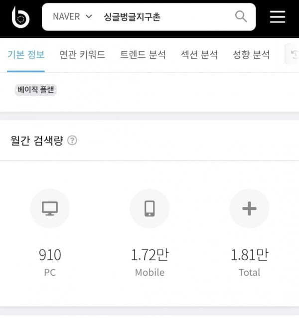 특이한점은 pc보다 모바일검색이 극히 압도적이다