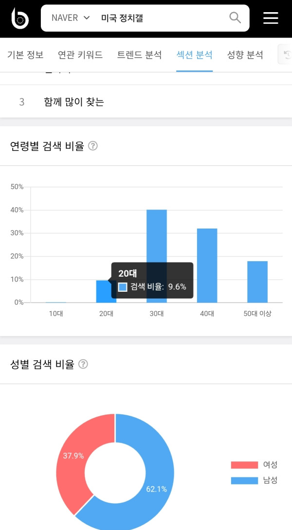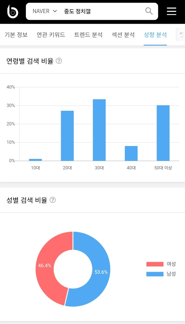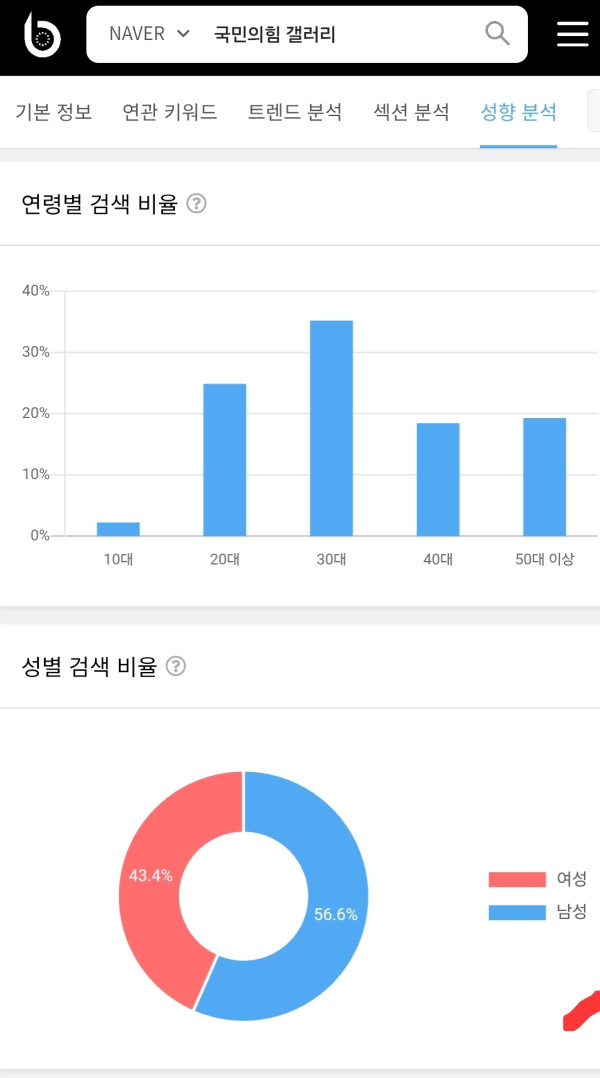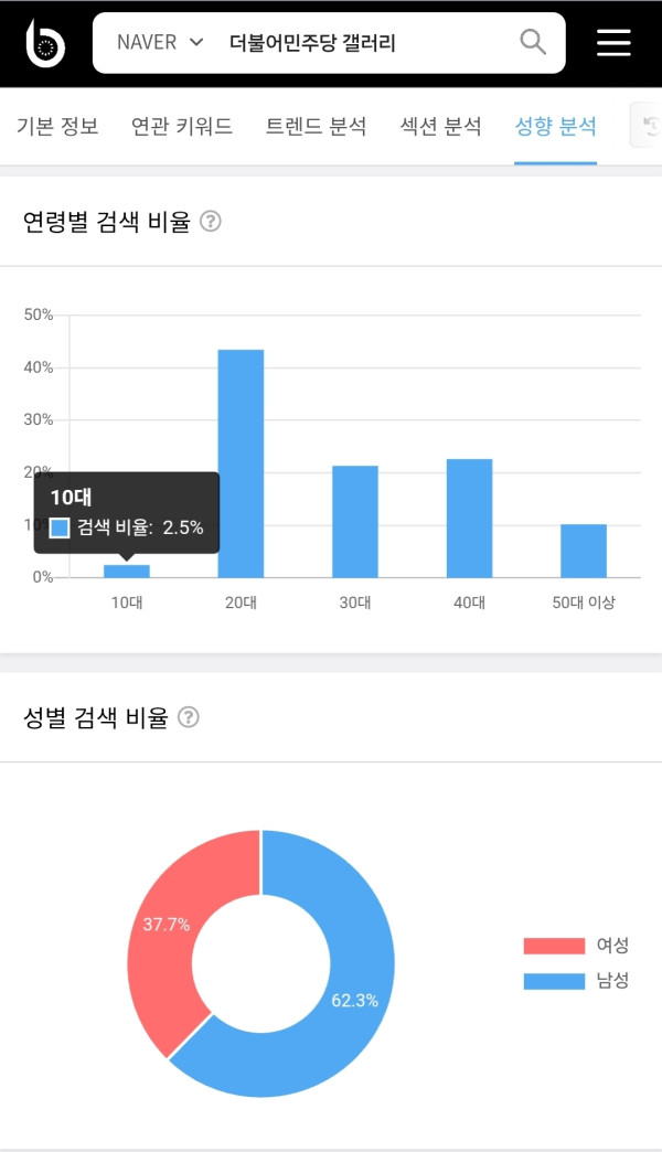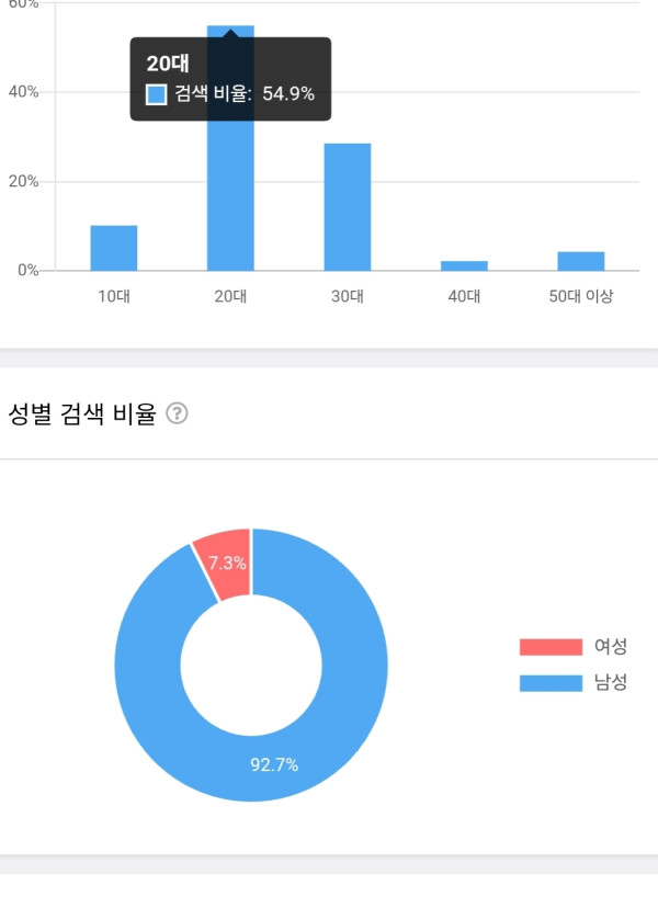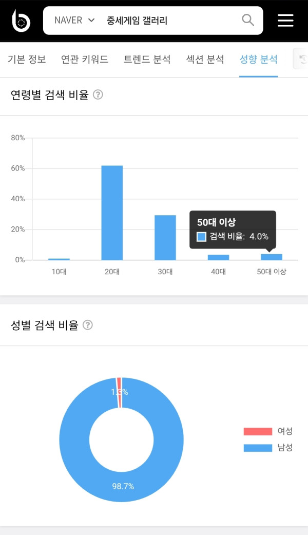 싱글벙글 재미로 보는 갤러리 별 검색량과 성별 세대 정보