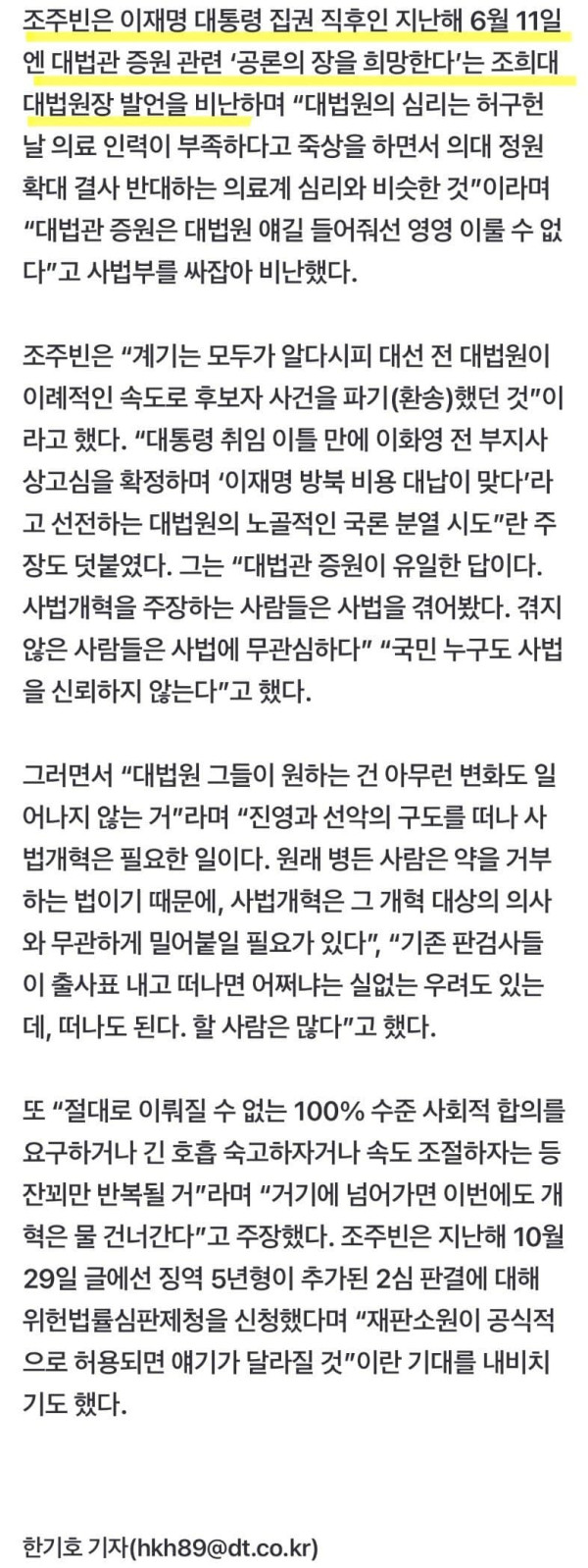 조주빈 “재판소원·대법관증원 사법개혁이 답…엉터리 3심제”