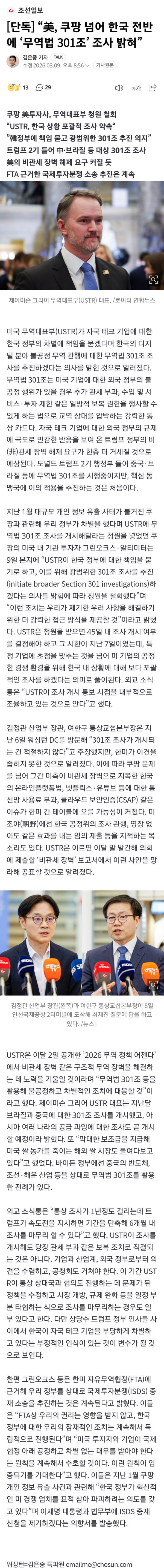 “美, 쿠팡 넘어 한국 전반에 ‘무역법 301조’ 조사 밝혀”