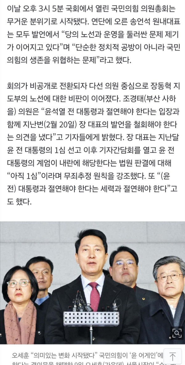 장동혁에 대한 비판만 쏟아졌다 함.