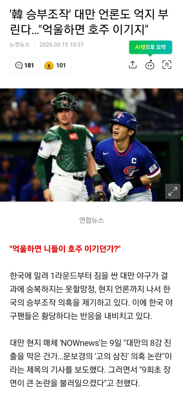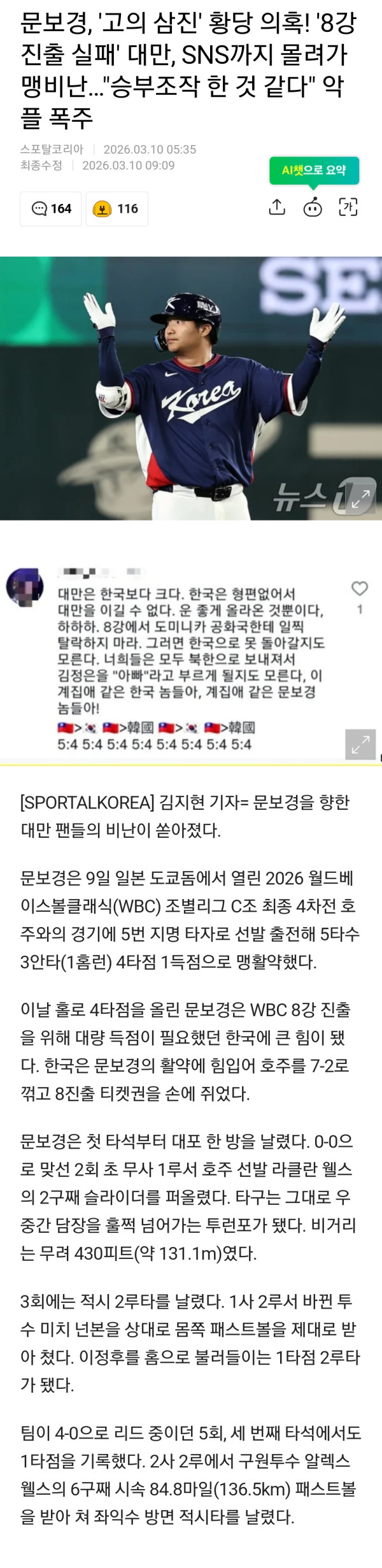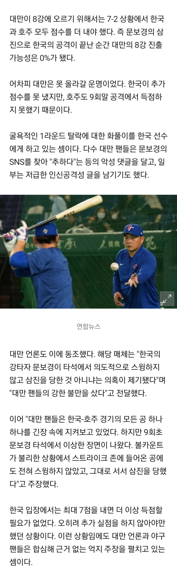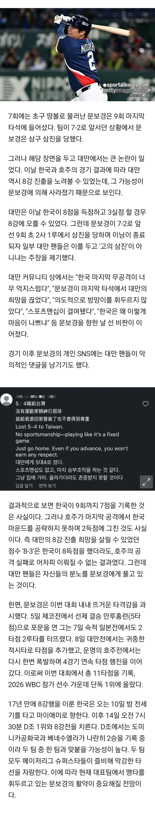 문보경이 승부조작 했다며 sns에 몰려가서 욕하는중인 대만