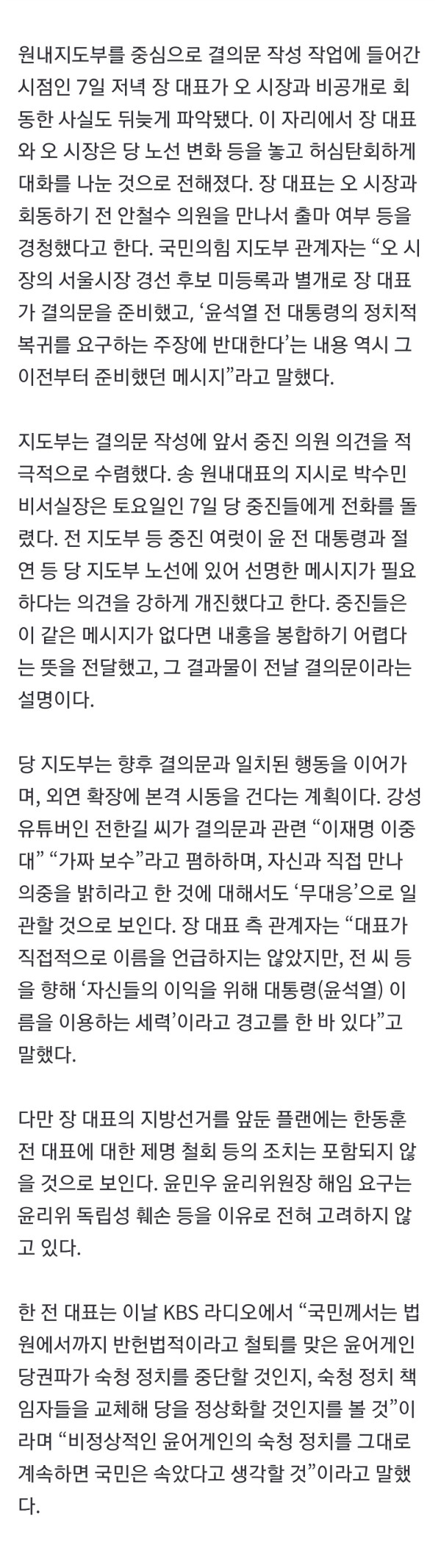 '윤 절연' 결의문 작성에 장동혁이 적극적 관여