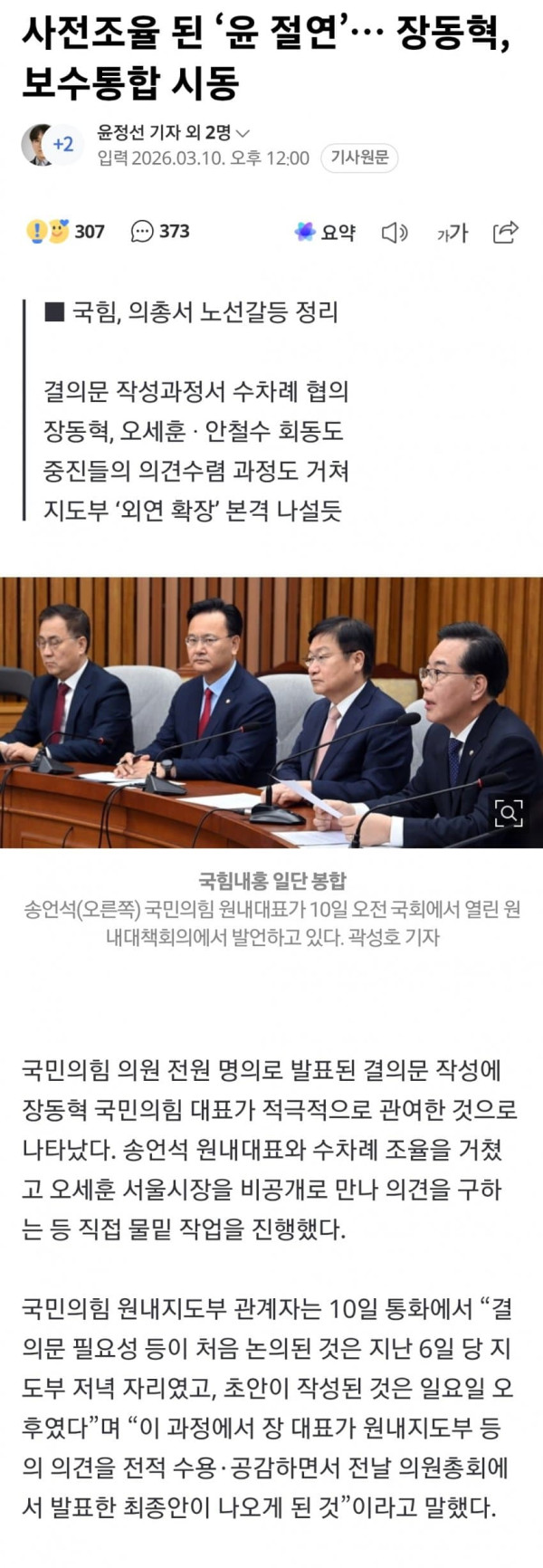 사전 조율된 '윤 절연'... 장동혁, 보수통합 시동