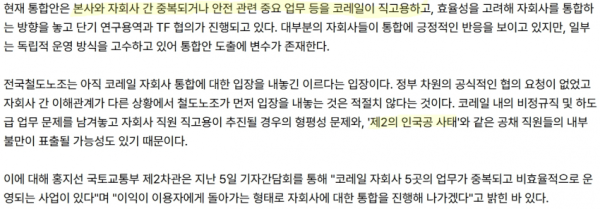 코레일 자회사 직고용 거의 확정 아님?