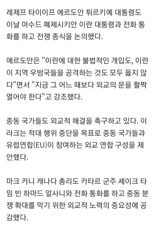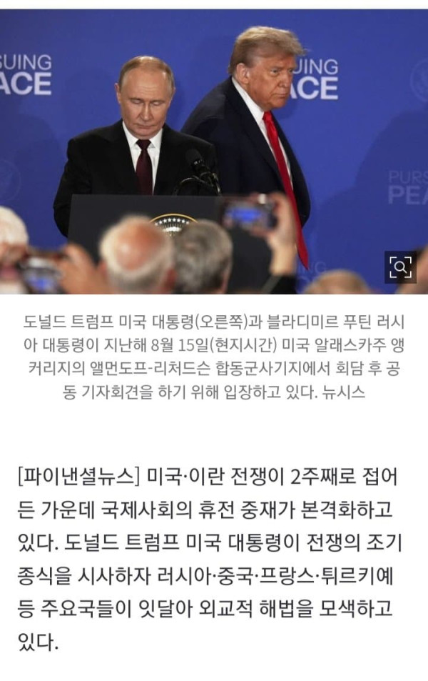 미국·이란 전쟁이 2주째로 접어든 가운데 국제사회의 휴전 중재가 본격화하고 있다. 도널드 트럼프 미국 대통령이 전쟁의 조기 종식을 시사하자 러시아·중국·프랑스·튀르키예 등 주요국들이 잇달아 외교적 해법을 모색하고 있