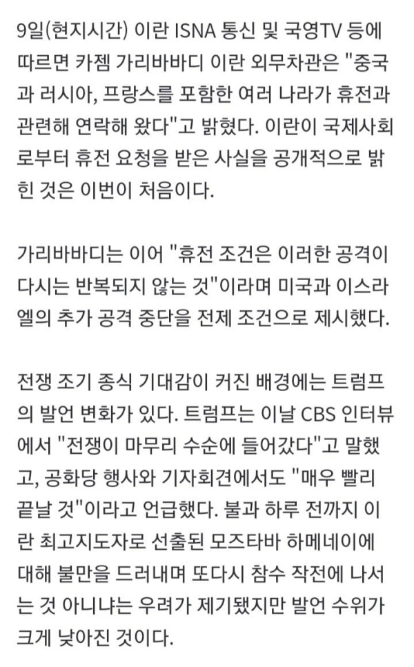 "휴전 해주면 안될까?" 미·이란 전쟁 2주만에 등장한 '휴전'