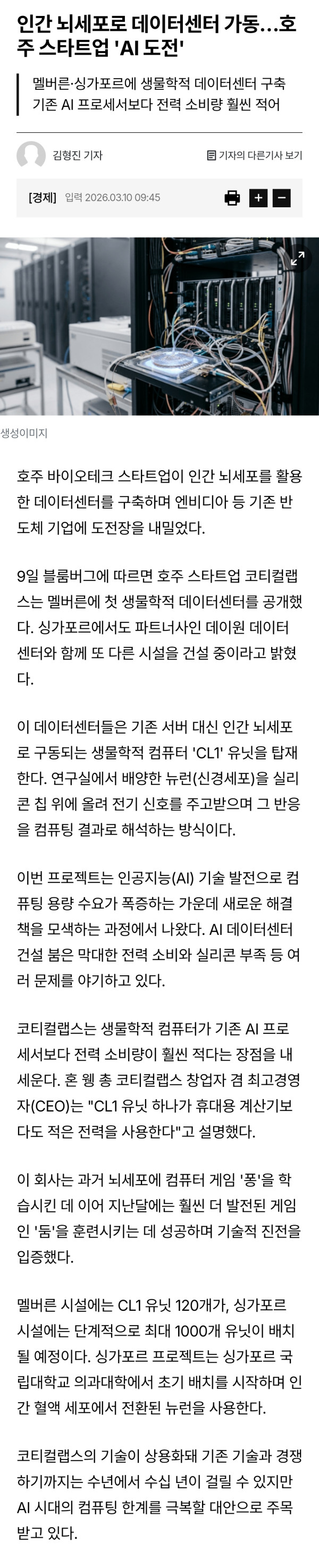 인간 뇌세포로 데이터센터 가동... 호주 스타트업 'AI도전'
