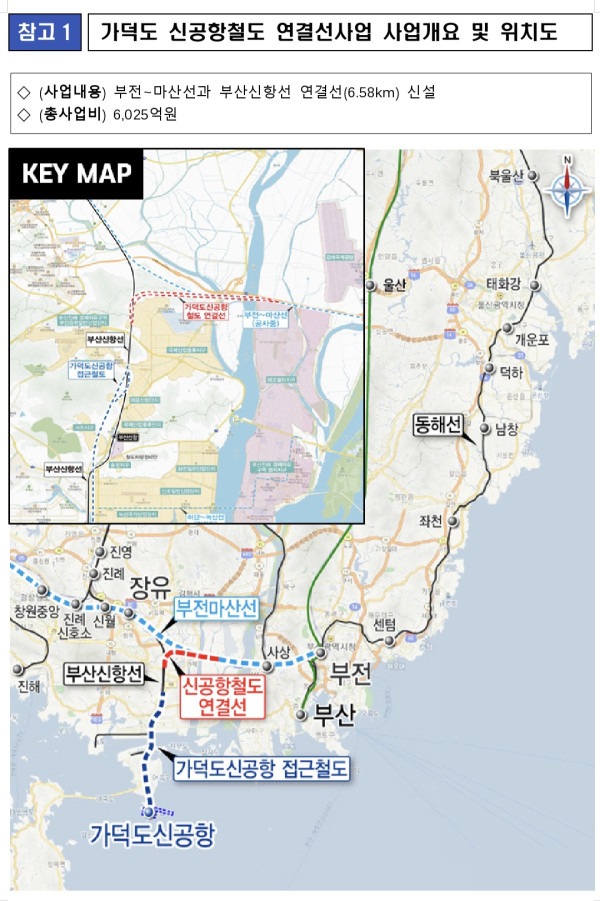 가덕도 신공항철도 연결선 건설사업은 경전선과 부산신항선을 연결해 동남권 지역의 가덕도신공항 접근성을 개선하고 항만 물류 이동 효율성을 높이기 위한 사업이다.